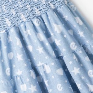 Strappy dress so that the little ones can continue playing on the hottest days. The blue dress has a dénim print with stars, hearts and the Conguitos emblem. It has wide straps and 3 ruffles that give it the perfect length for the little ones’ comfort. Dress with ruffles Denim
