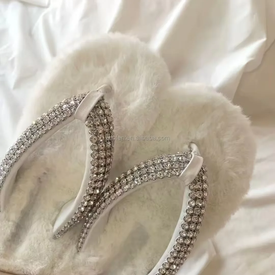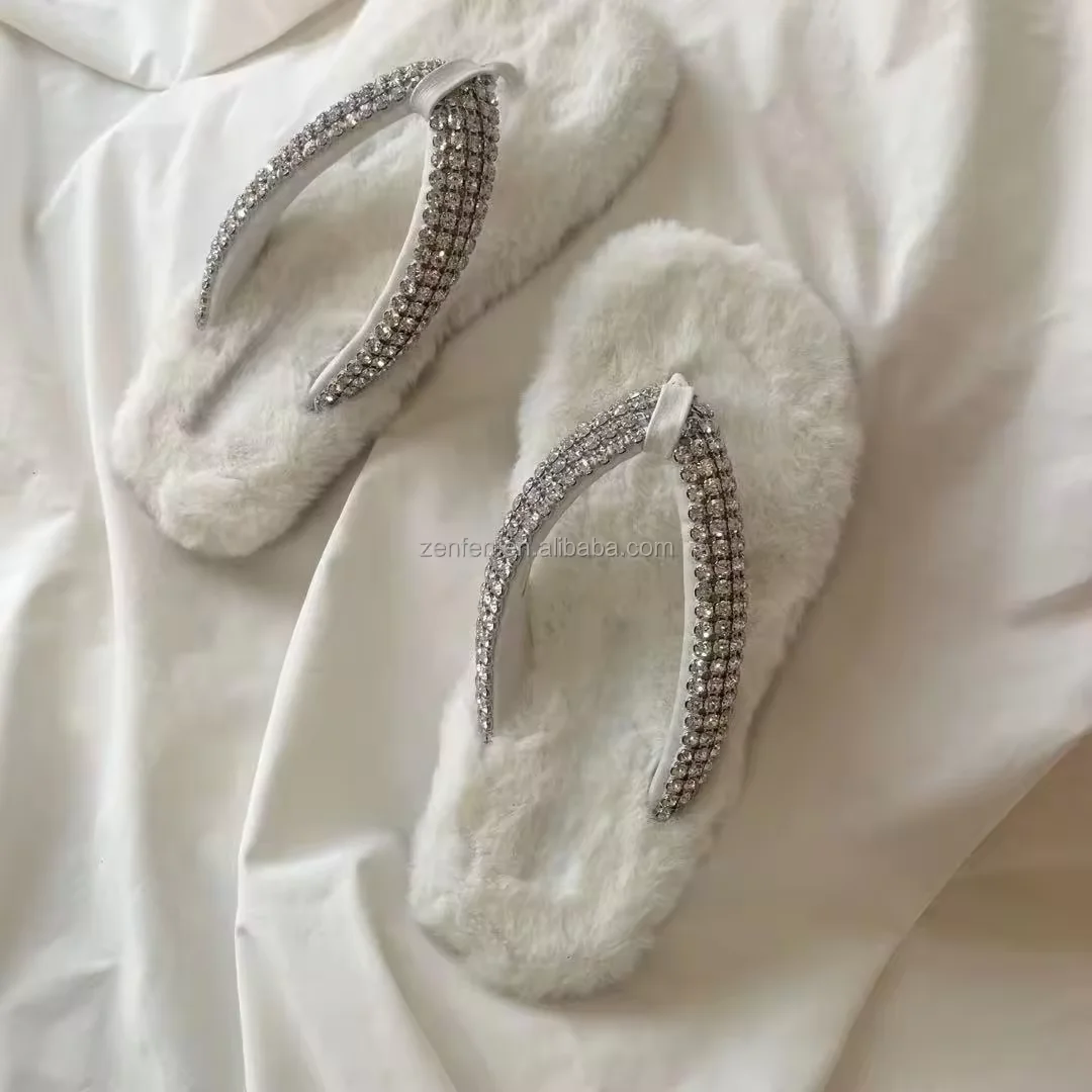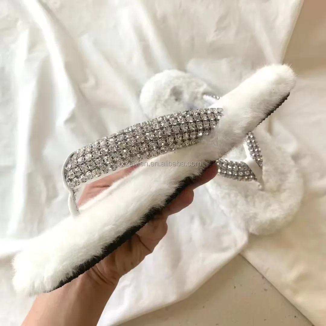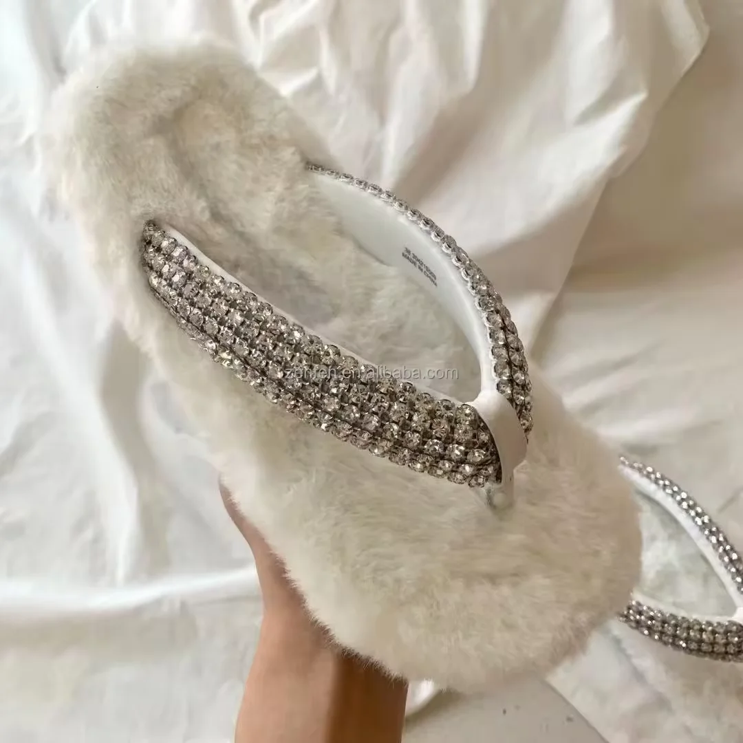 2025 New Women’s Plush Slippers Luxury Mink Sandals Anti Skid and Wear-Resistant Sole Sandals Cross Flat Diamond slippers