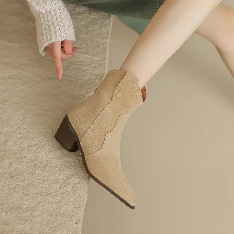 2025 Winter Classic Chelsea Boots Women Cow Suede Pointy Toe Wedge Heel Ankle Boots Slip-On Comfortable Height Increasing