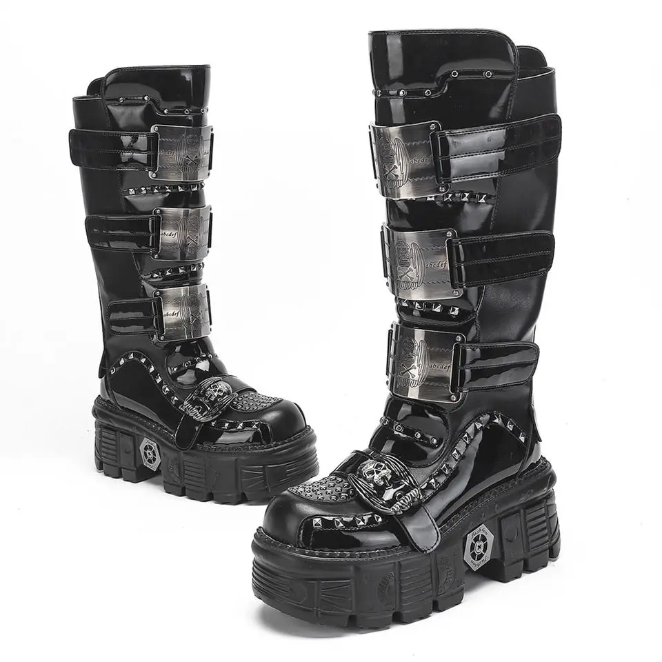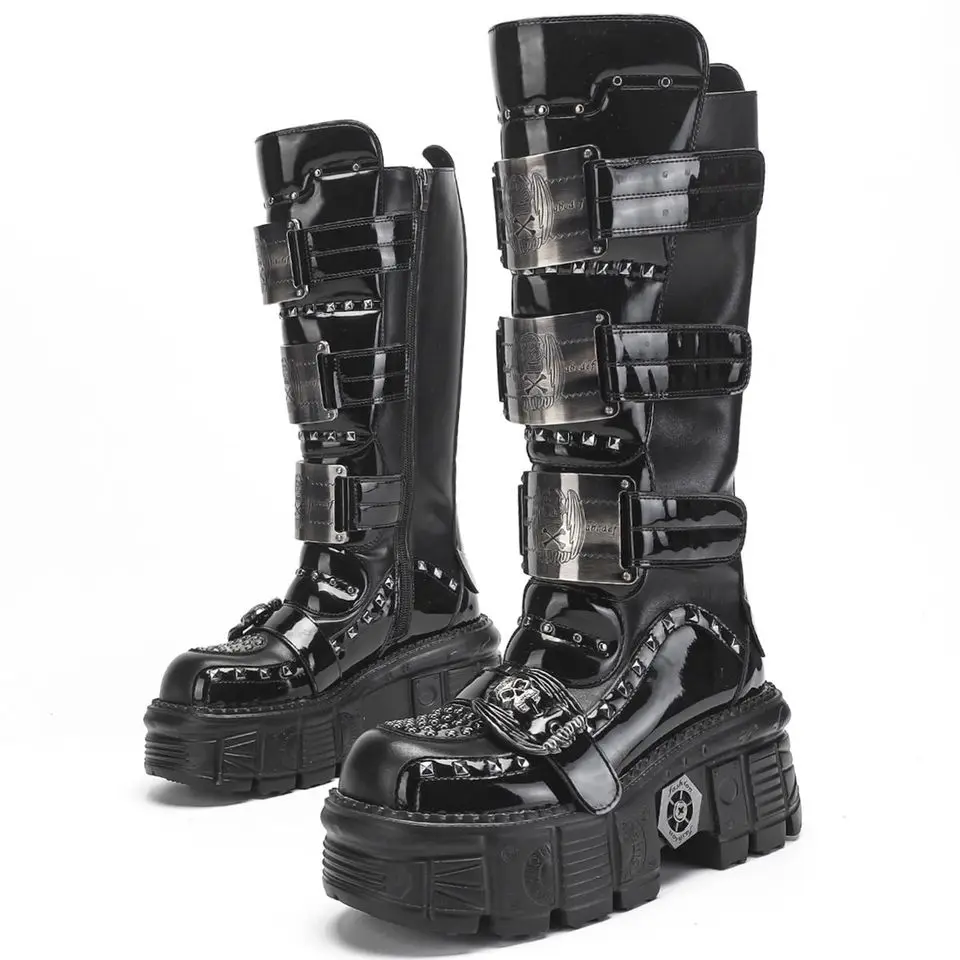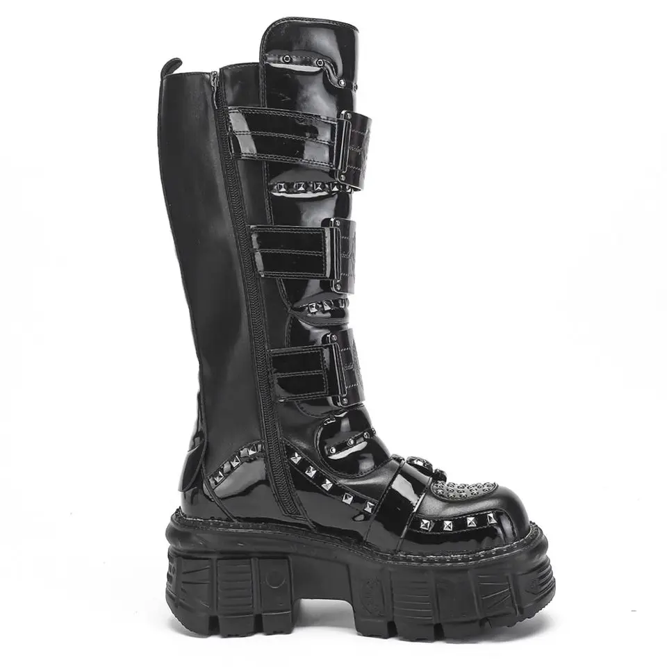 2025 WoMen’s Thick-soled Premium Metal Dark Long Lightweight Rock Punk Mid-height Platform Chelsea Boots