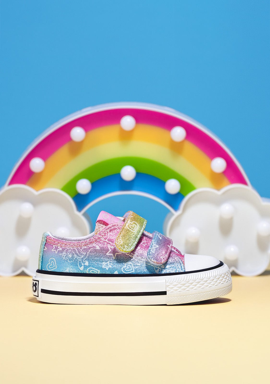 Walking on rainbows with the multicoloured sneakers, every step is an adventure of unicorns and stars.