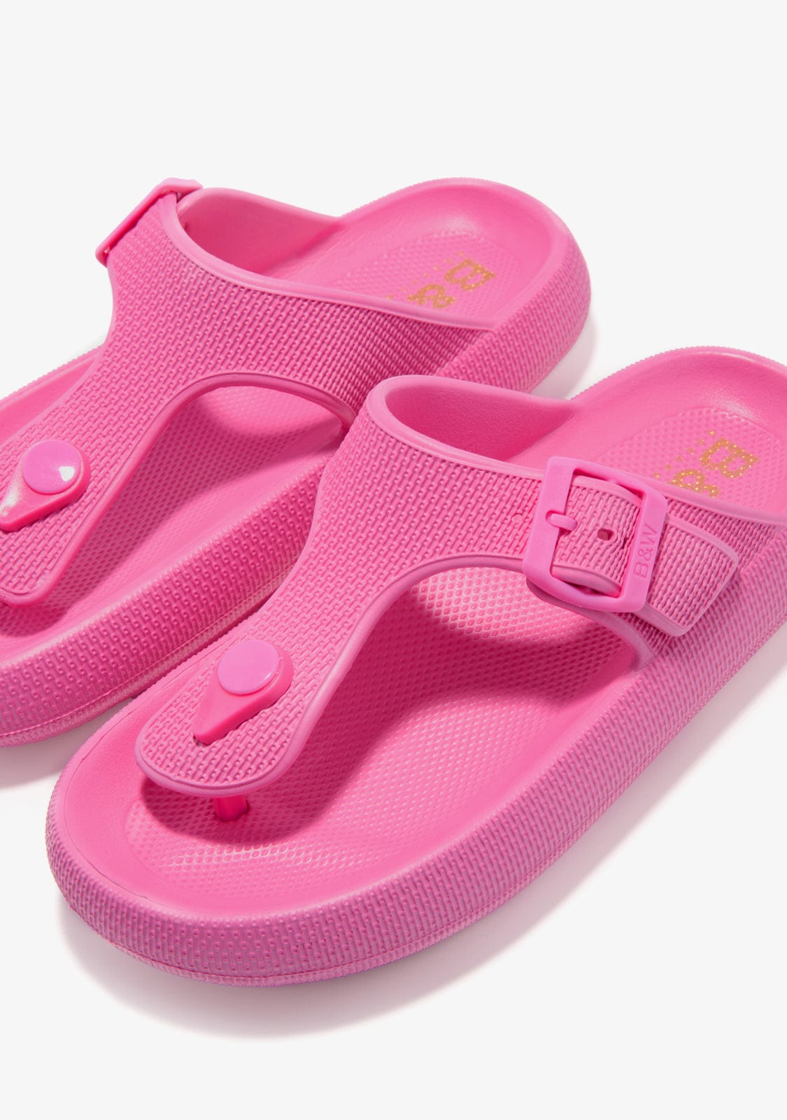 Fuchsia sandals. This rounded silhouette model has one strap with buckle fastening. They are made of materials that offer extra comfort. Also, it moulds to the little ones’ feet. It has the B&W logo on the sole and buckle.