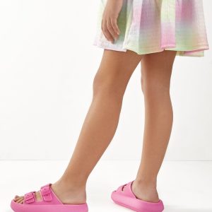 Fuchsia Double Buckle Slides