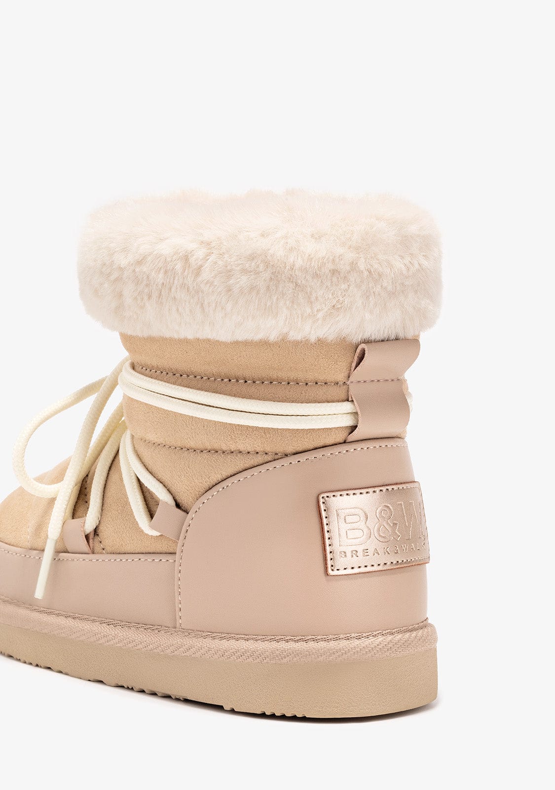 Keep warm in these Aussie boots with a faux fur lining and outline.