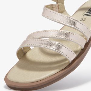 These strappy sandals are made of metallic gold leather that gives them an elegant touch and feature a metallic buckle fastening. It has three straps that improve the support of the foot.