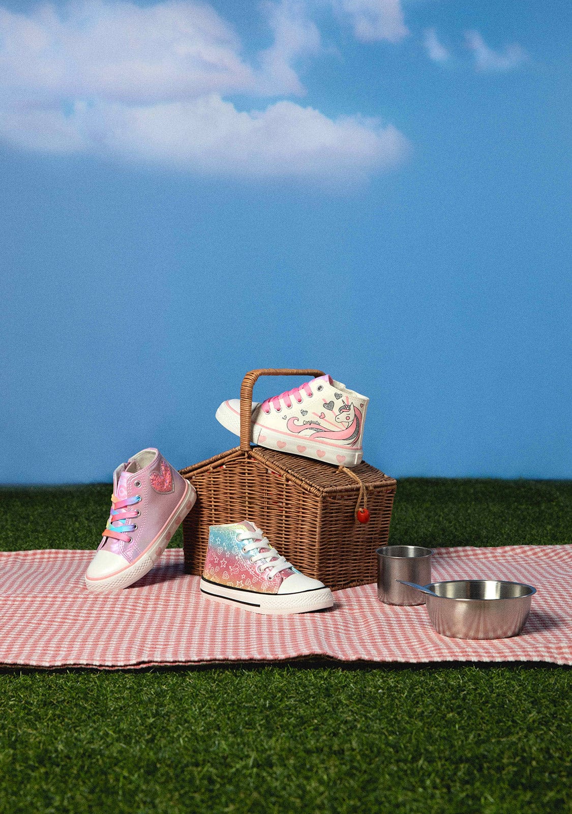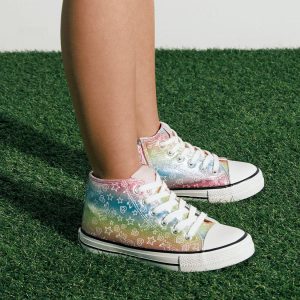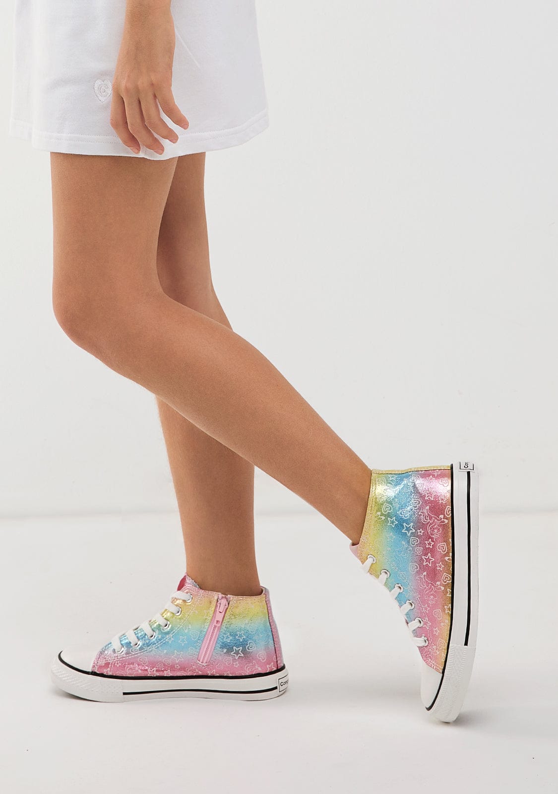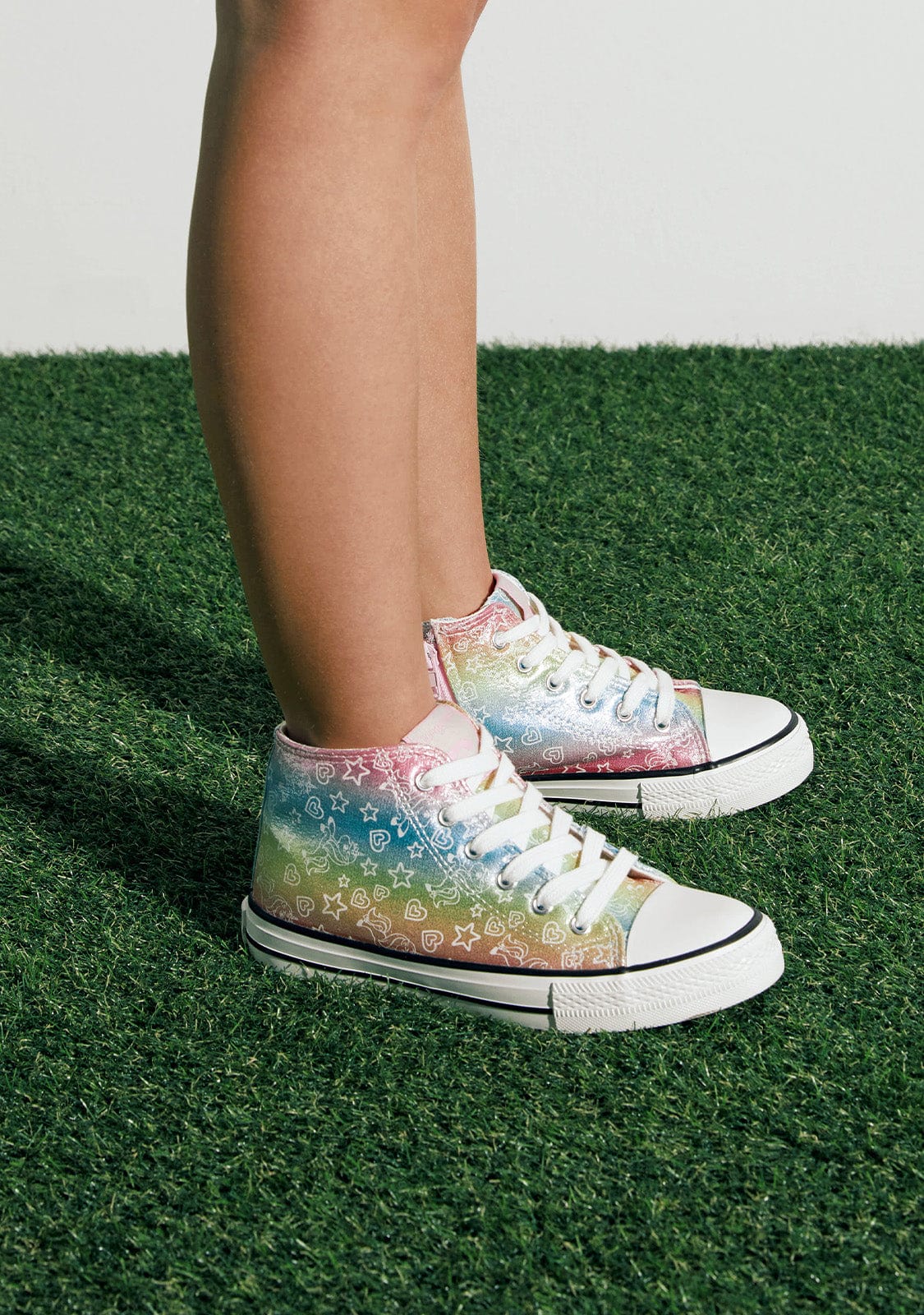Walking on rainbows with the multicoloured sneakers, every step is an adventure of unicorns and stars.
