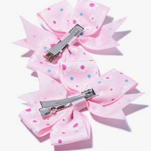 This pack of 2 pink coloured bows is perfect to give a flirty touch to the little ones’ looks. The bows have a metal hook at the back to attach to the hair. The perfect accessory for all occasions.