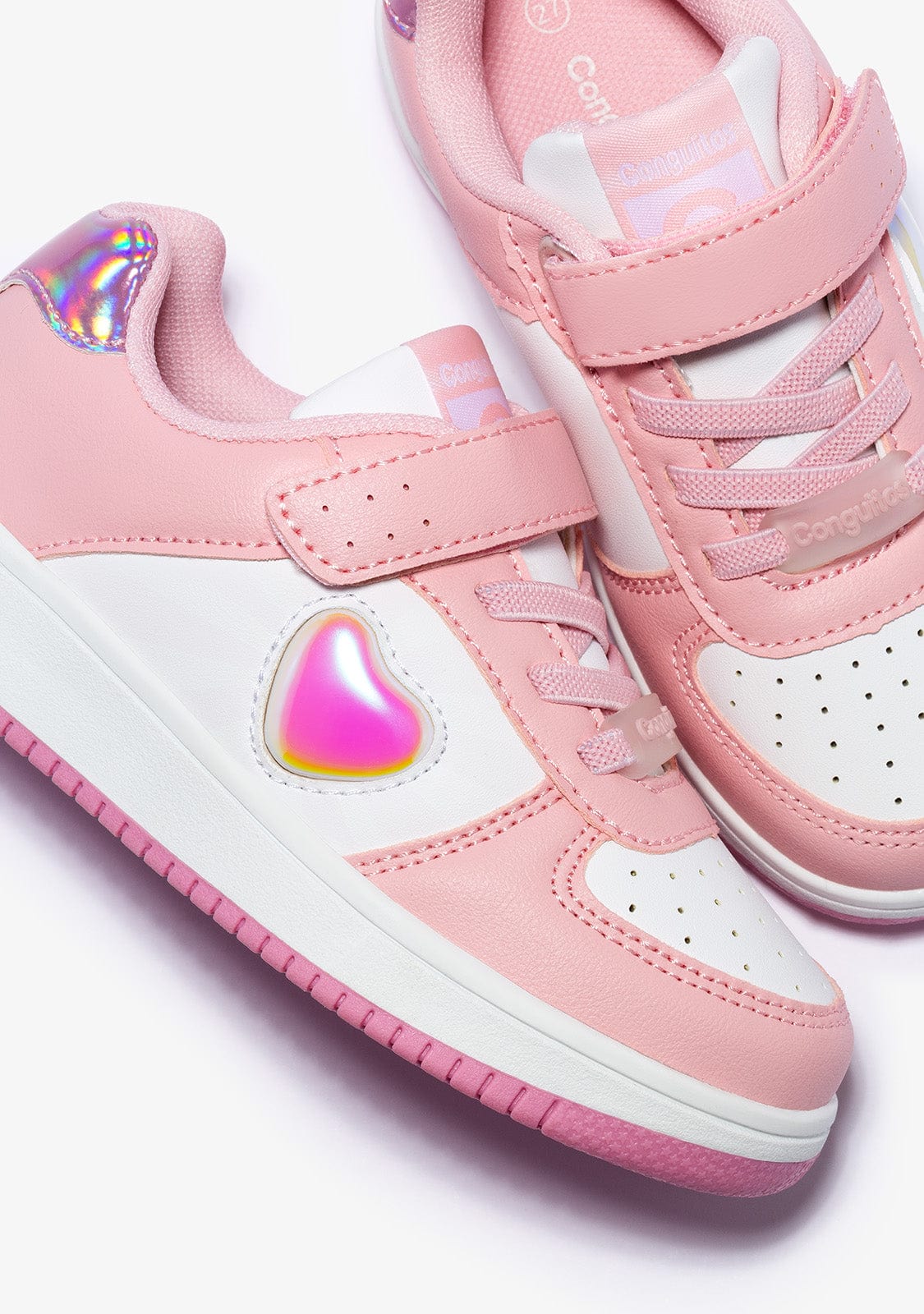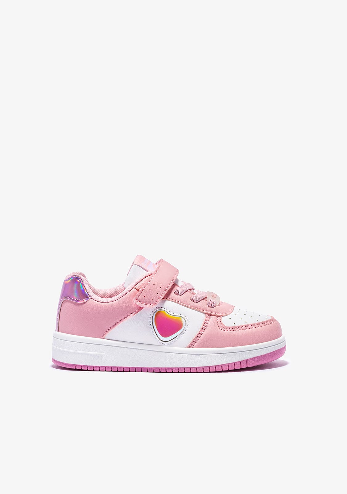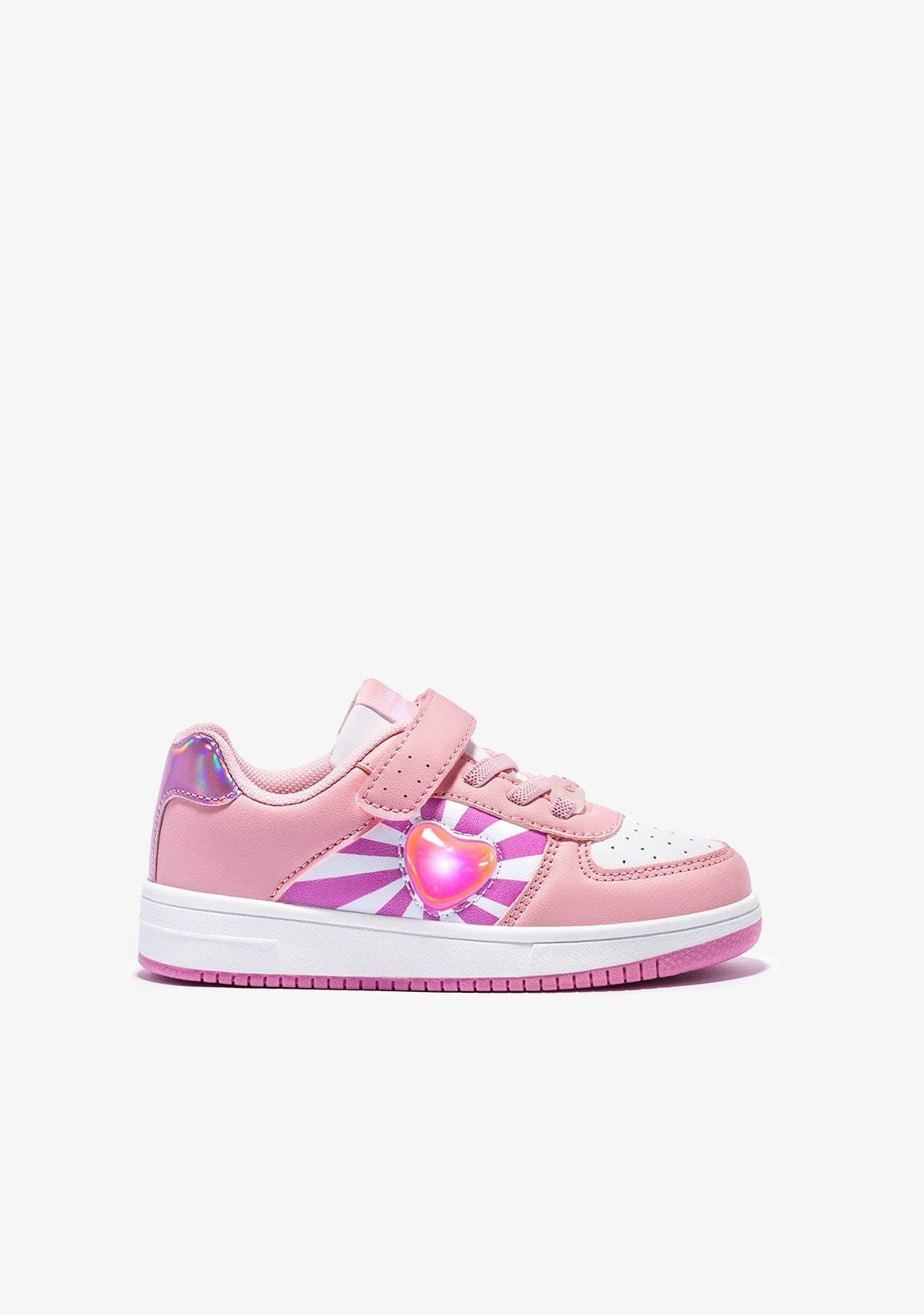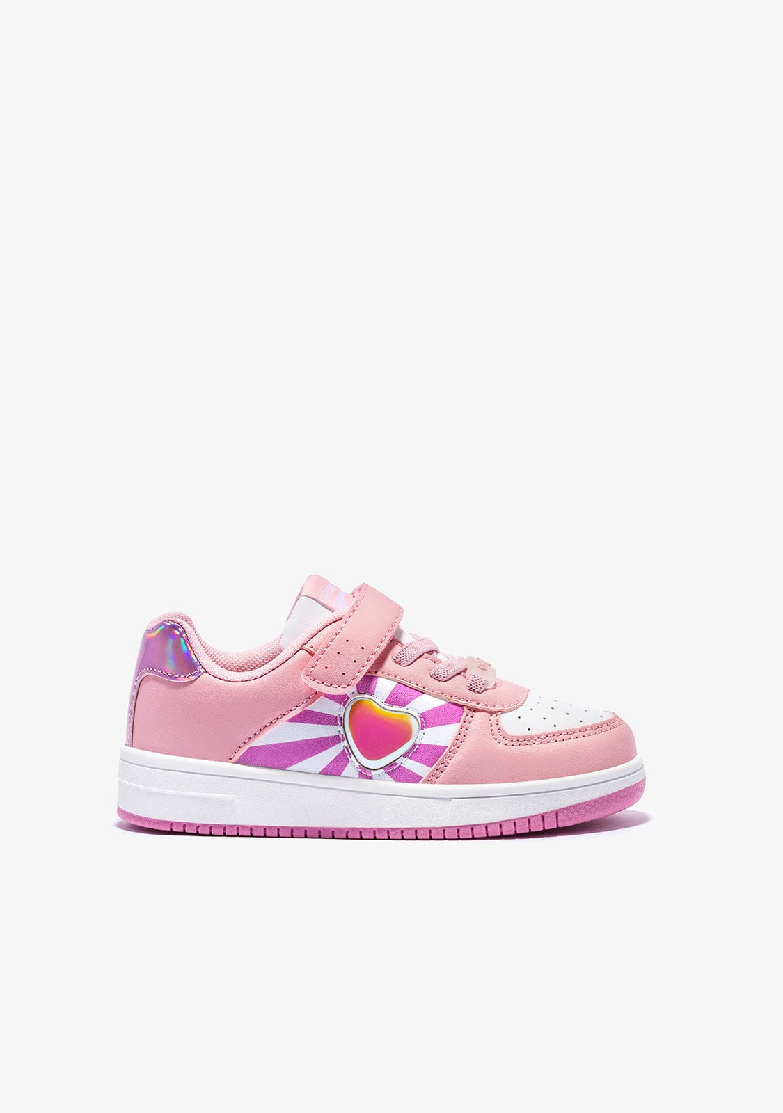 Pink heart trainers to fill your days with colour and fun. The pink micronapa model has a grippy strap and elastic laces for a better grip on the foot.