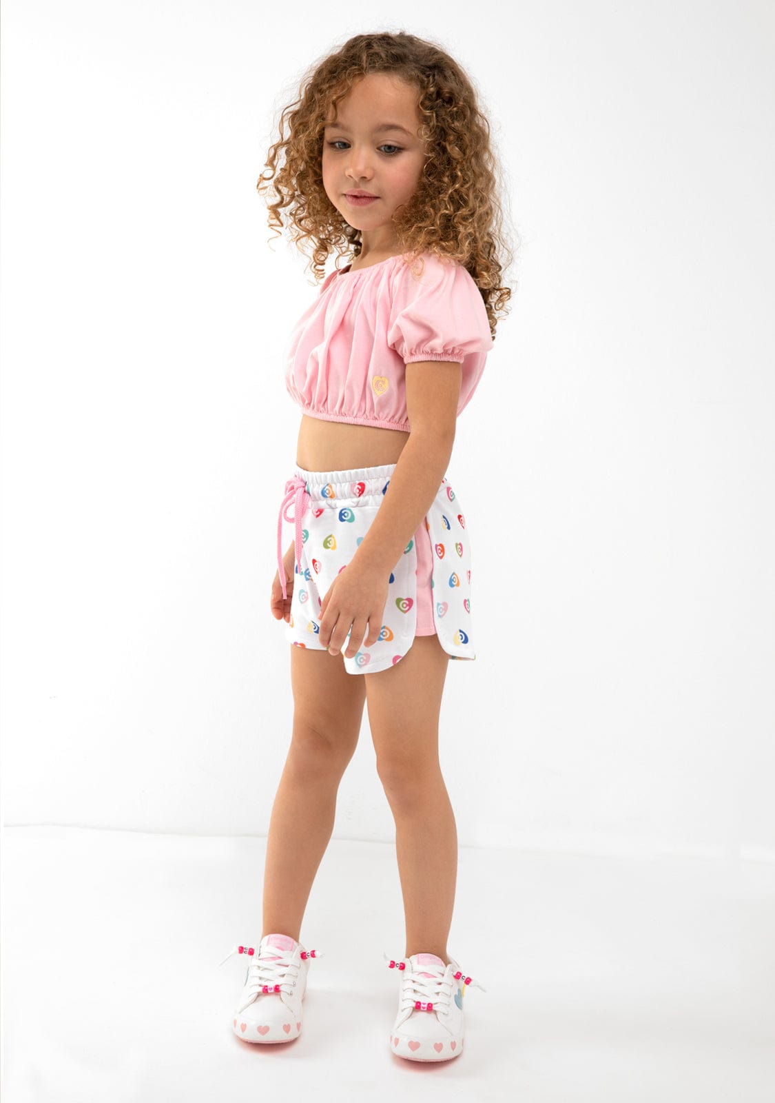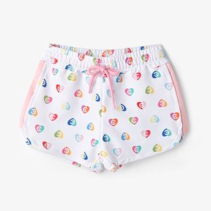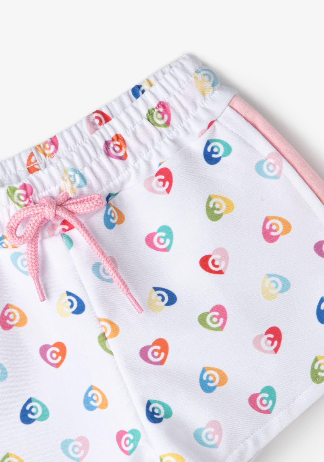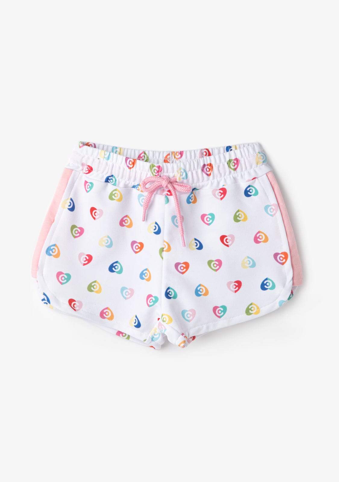 This sporty model brings a touch of joy to everyday life with its multicoloured heart print. They feature an elastic waistband and a pink drawstring for a better fit. The pink sides contrast with the rest of the trousers.