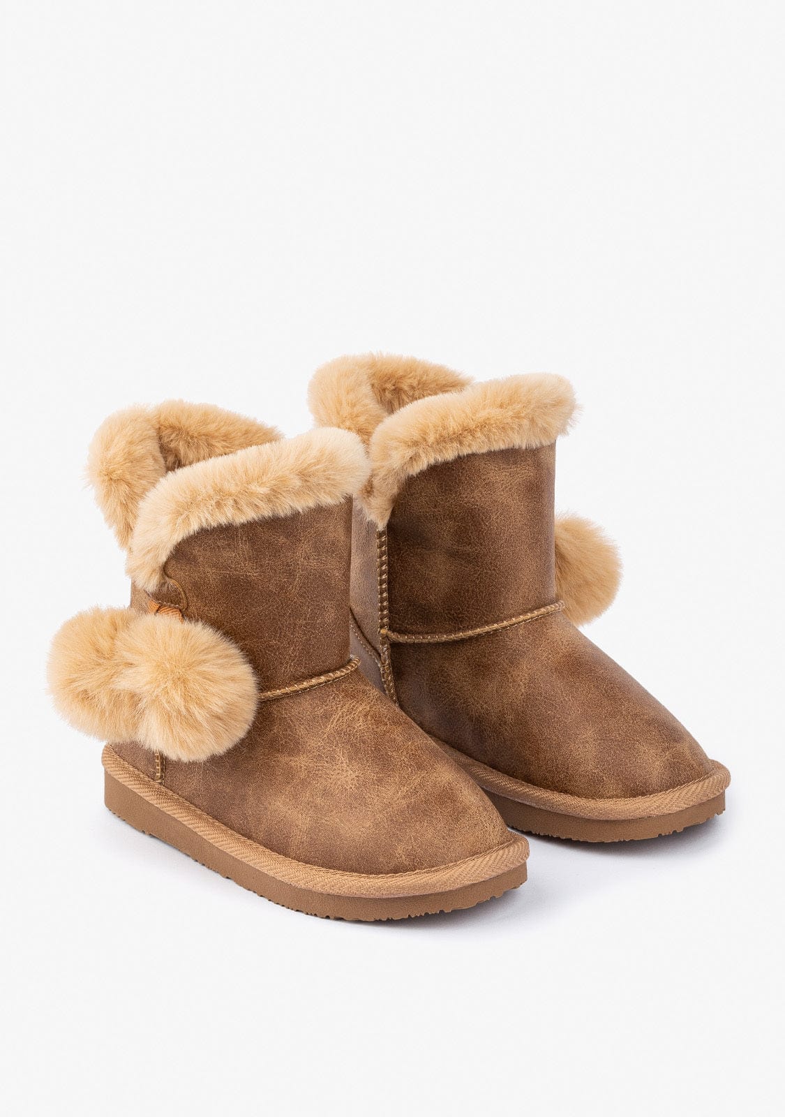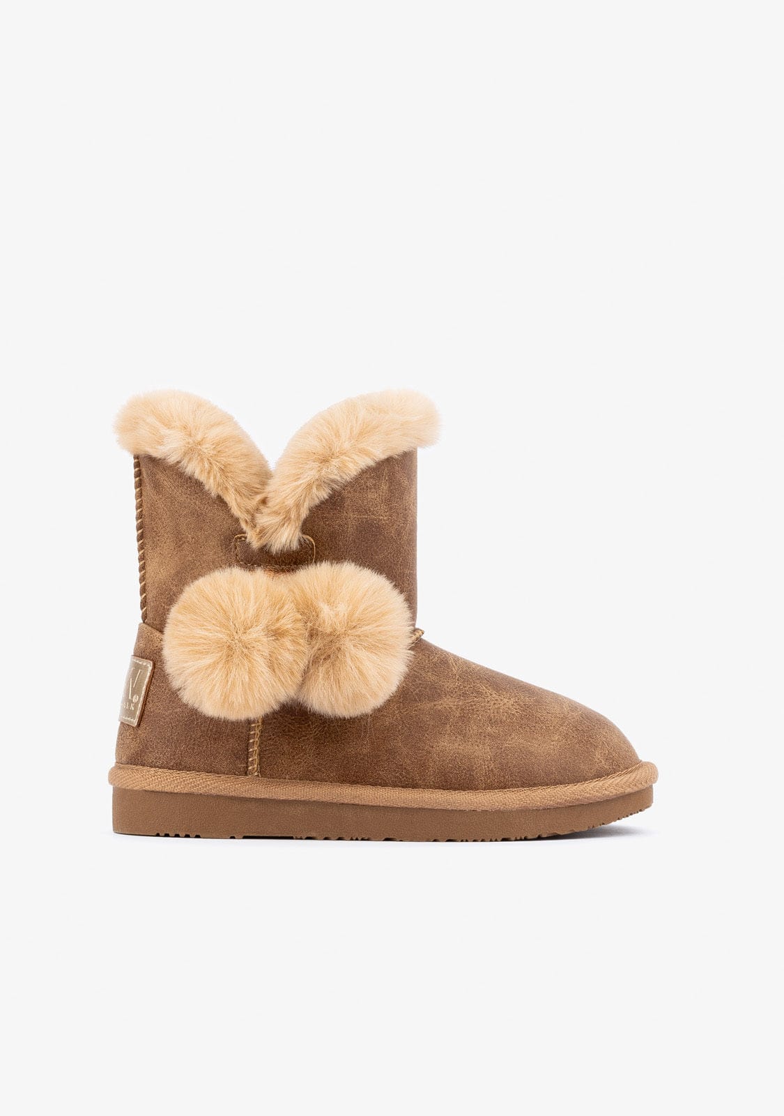 Australian boots made of synthetic material. Decorated profile and synthetic fur pompoms. B&W logo patch on the heel. These boots are perfect to combine with all winter looks. Comfortable and warm.