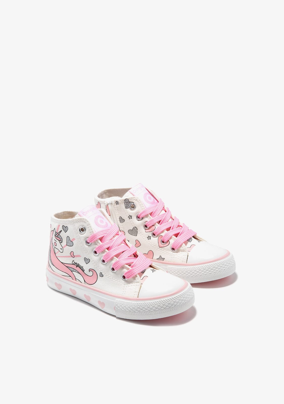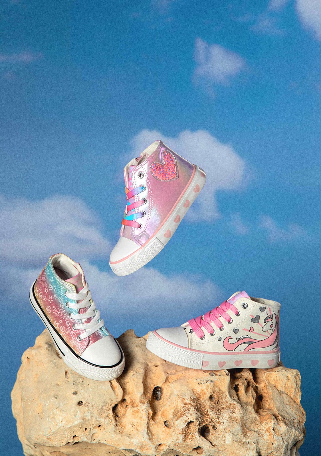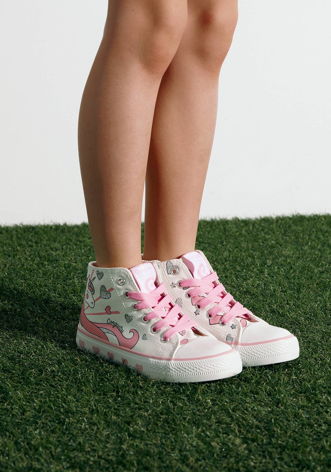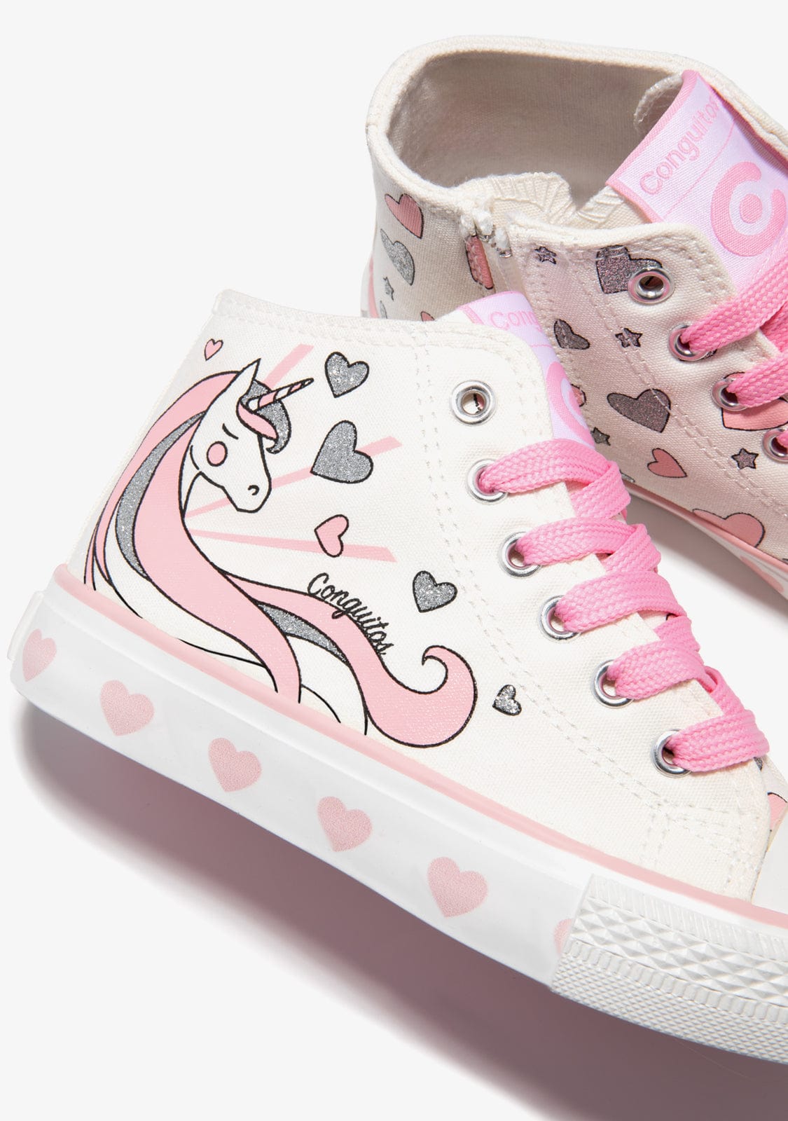 Just like in a fairytale, every step is an adventure of unicorns and hearts. These canvas high top sneakers are perfect for adding a touch of magic to everyday life.