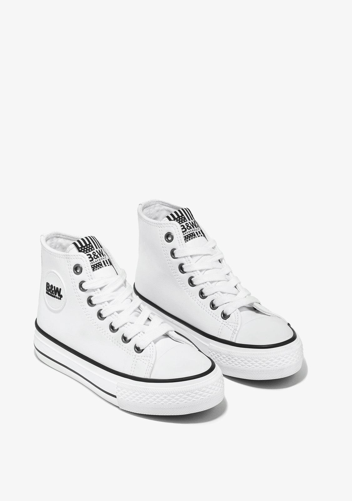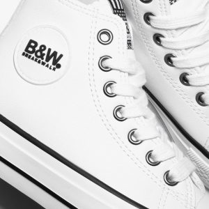 Unisex high top trainers made in synthetic nappa leather. Adjustable cotton laces. Reinforced toecap. Rubber sole. B&W logo on outer side. These trainers are an essential basic.