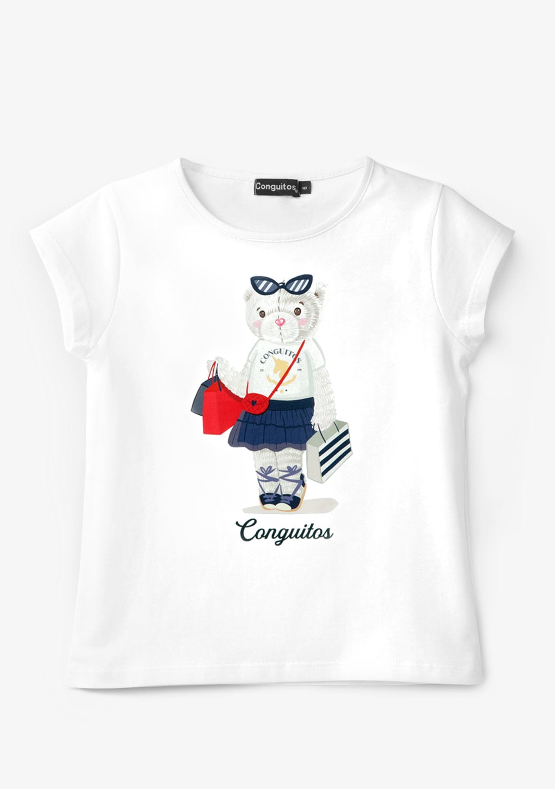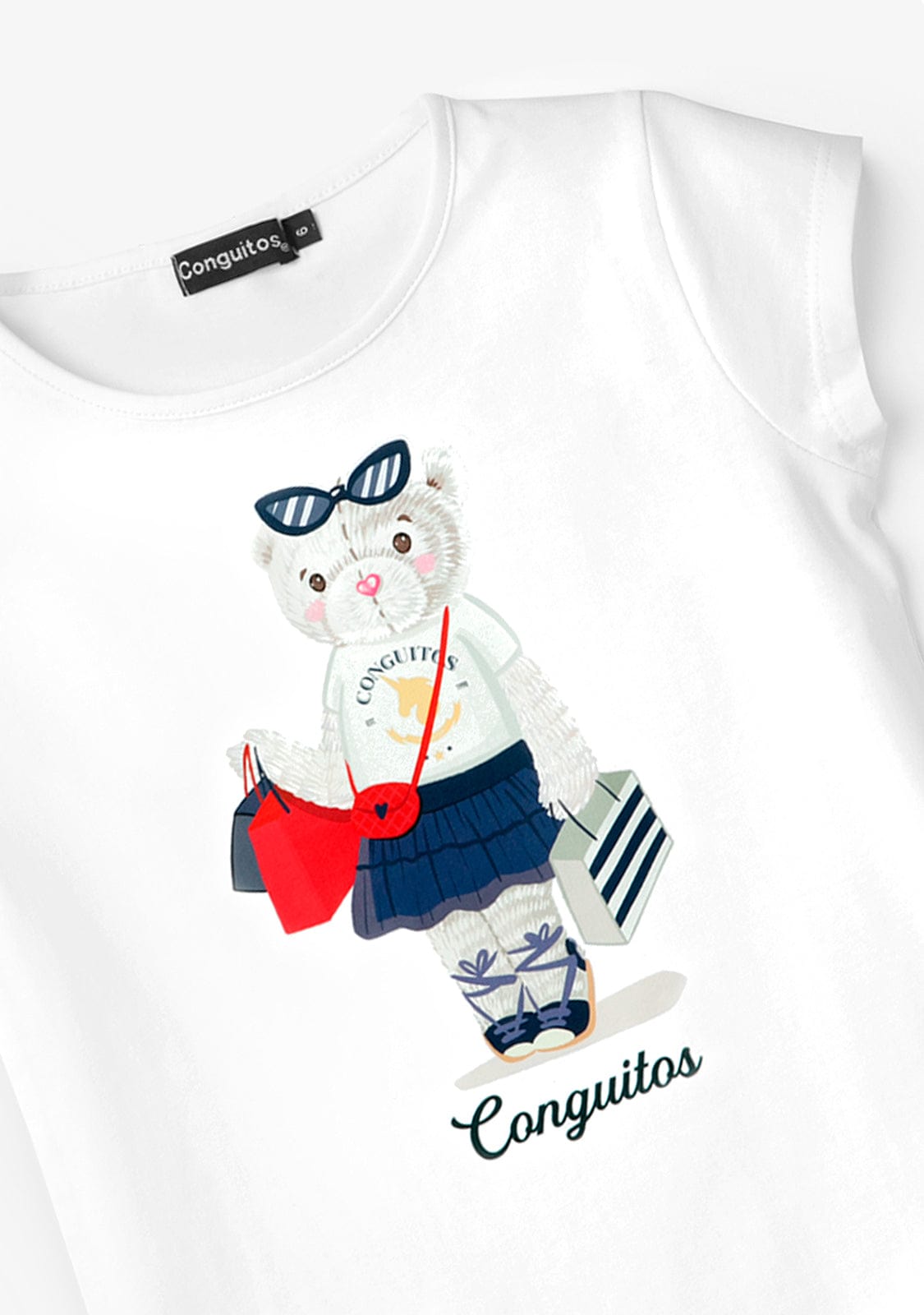 White cotton t-shirt with bear print, perfect to spend the warmest days in the coolest and funniest way.