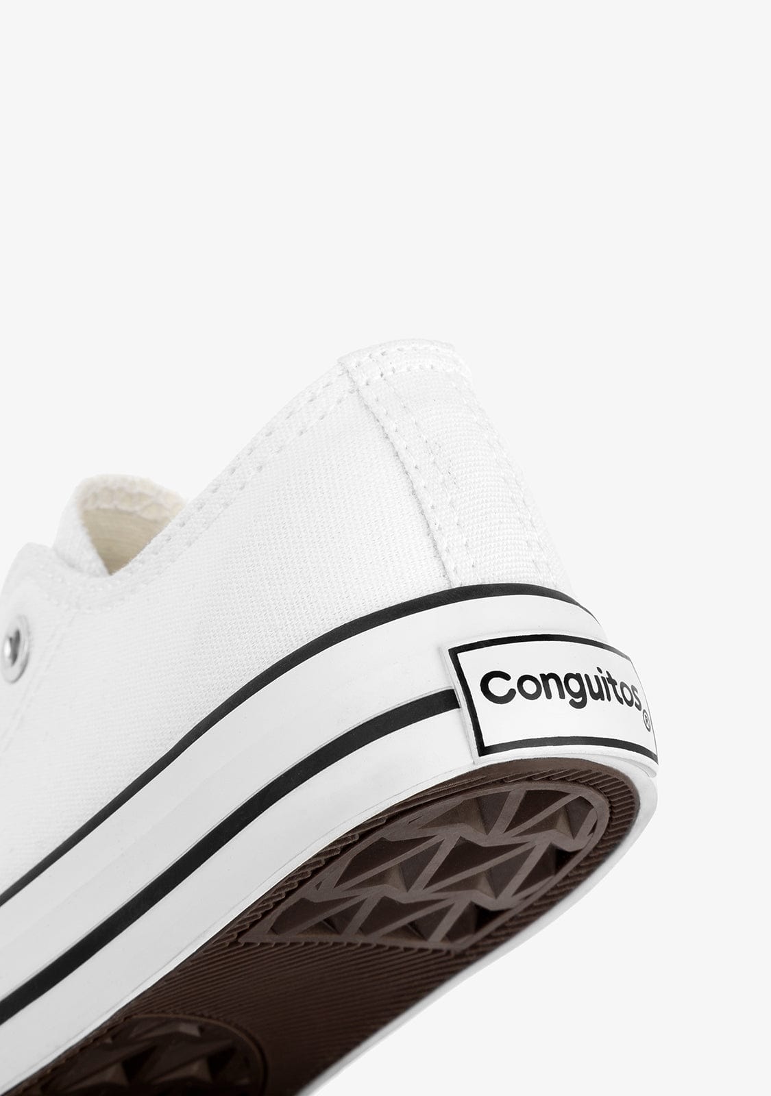 The white model has rubber reinforcement on the toe for greater resistance. It has black details and the Conguitos logo on the heel. It has white laces following the style of this classic.