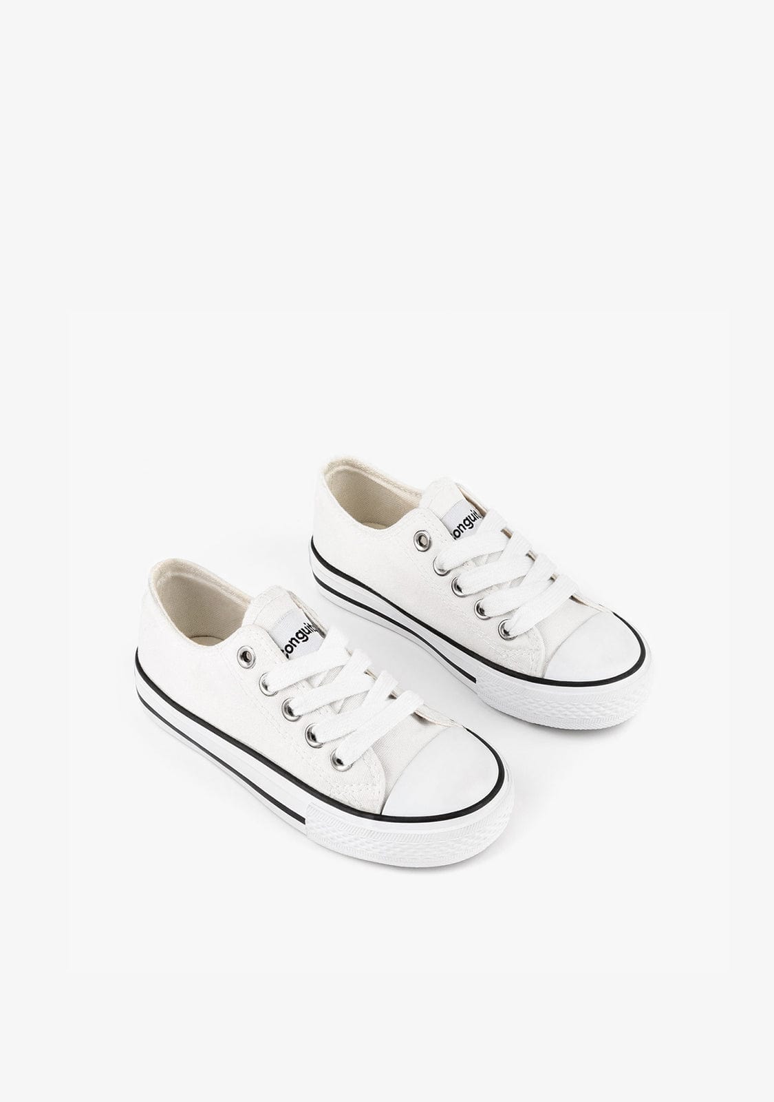 White canvas sneakers, a must-have basic for everyday adventures in comfort.