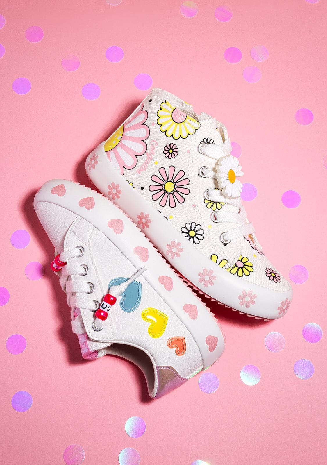 Floral explosion. These high top sneakers decorated with colourful flowers are perfect for adding a touch of cheer to little ones’ looks.
