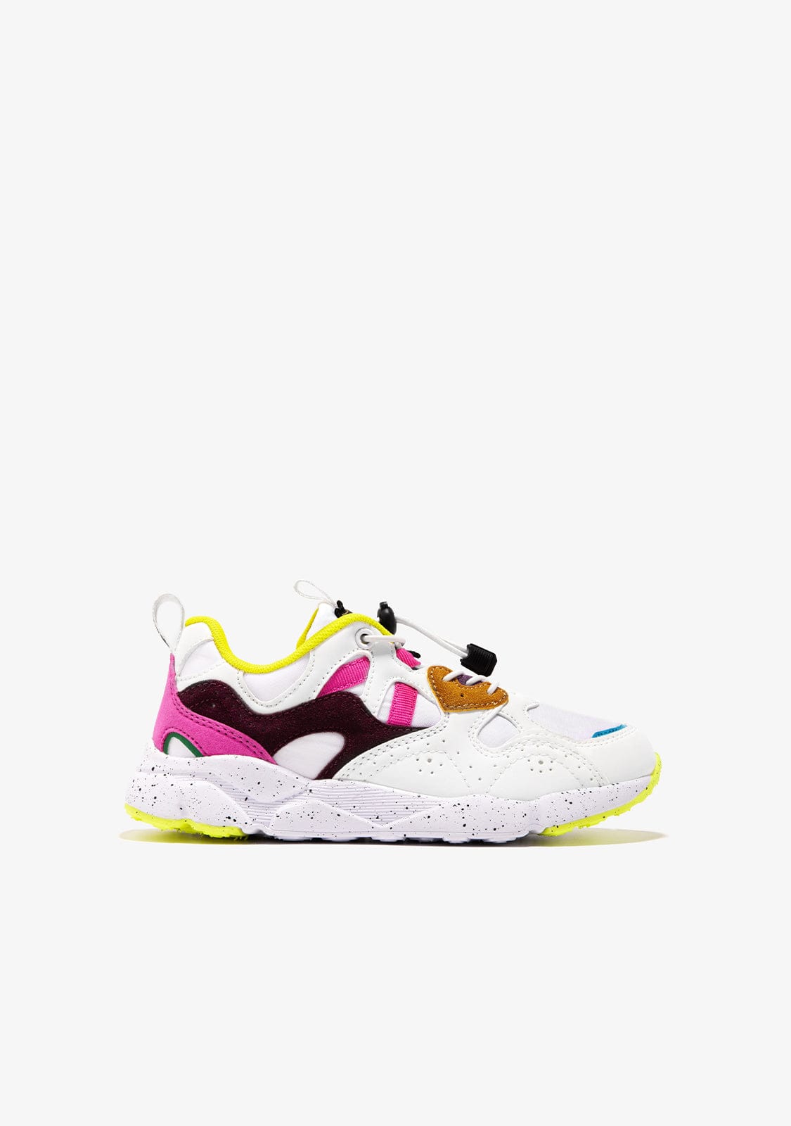 These fun sneakers are decorated with different colours, textures and shapes.