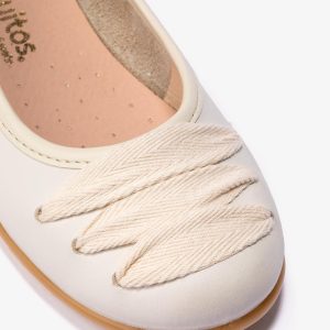 Ballerinas with ballet style. Created with cotton lacing to stand out at the most elegant events.This sand-toned design has a unique finish. Its strap made of soft and resistant materials is knotted at the ankle, providing an original and eye-catching touch. It also has a rubber sole for perfect grip