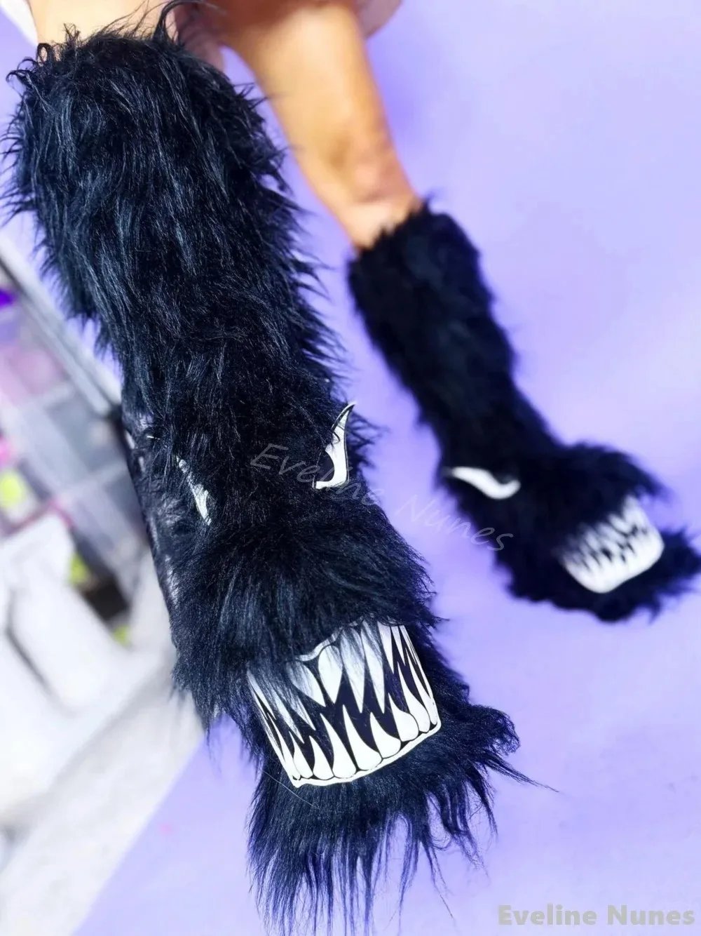 Shark Thick-soled Warm Fur Boots Women Sexy Round Toe Big Mouth Slip on Anti-slip Snow Boots 2025 New Platform Knee High Boots
