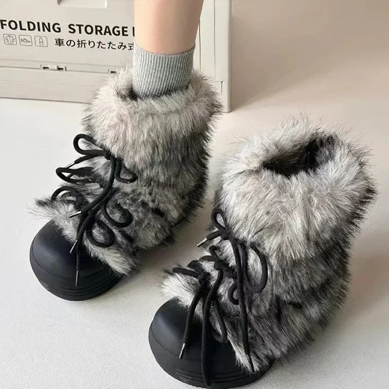 Bow Platform Women Snow Ankle Boots Fur Designer Fashion Short Plush Flats Cotton Shoes 2025 Trend Warm Cozy Winter Botas Mujer
